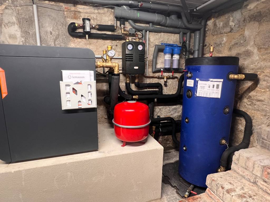 Remplacement d'une géothermie de marque Watterkotte suite à de nombreuses pannes par une géothermie de marque Lemasson sur sondes verticales pour alimenter le chauffage sur plancher chauffant.